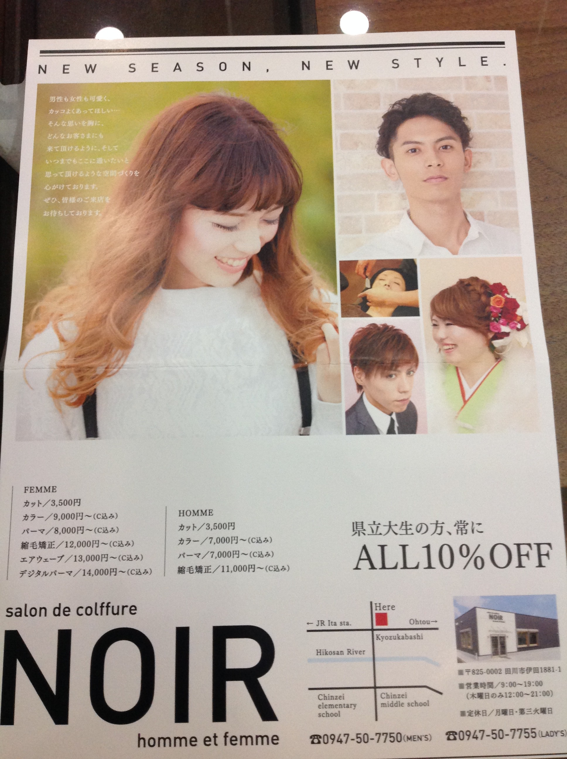 NOIRでは県大生割引きがあるってご存知でした⁇ 2016年1月9日 こんばんは‼︎ オーナーの中山です(^ ^) 意外と知られてないのですが、オープン当初から実は 県大生はオールメニュー10%offなんです‼︎^ ^ これがなかなか広まらず………(ーー;) 実は毎年、秋興祭にも協賛してぁこっそり県大生応援してます‼︎(^_^)v